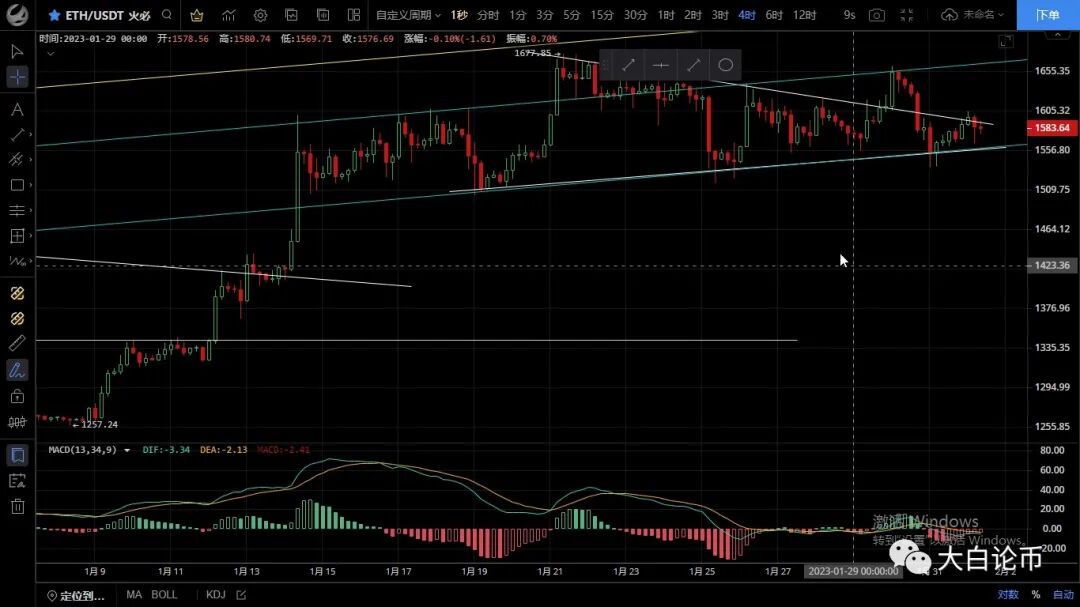 以太坊昨日走势和大饼一致,回踩支撑未破走出反弹,最高触及1604一线承压回落,恭喜跟上昨日思路的朋友,目前币价在1582附近运行,四小时级别ma均线聚拢,行情重回三角区间震荡,凌晨行情再次触及1565收针,ma7拐头向上形成短期支撑,macd空头逐步缩量双线聚拢,目前行情走势缓慢多空反复,空头力度减弱,重点关注晚间加息,未公布前预计都是以震荡为主,如暂缓加息将继续上涨,晚间操作切记做好风控谨防大涨大跌,上方压制1620-1665,下方支撑1550-1530