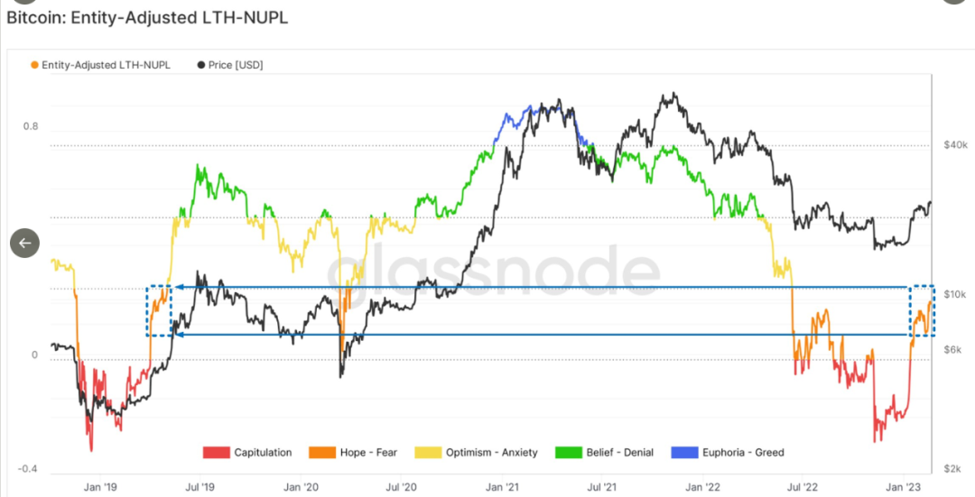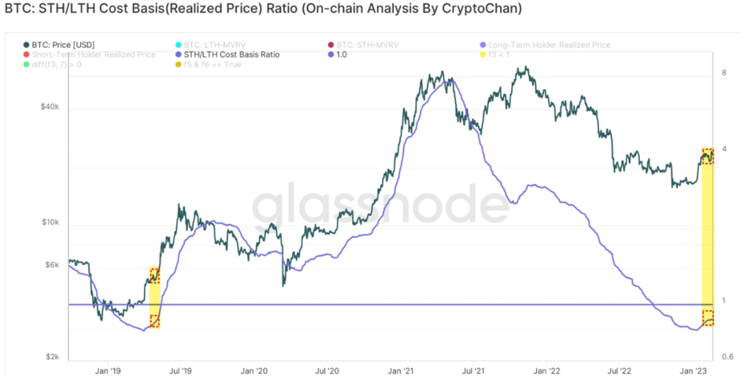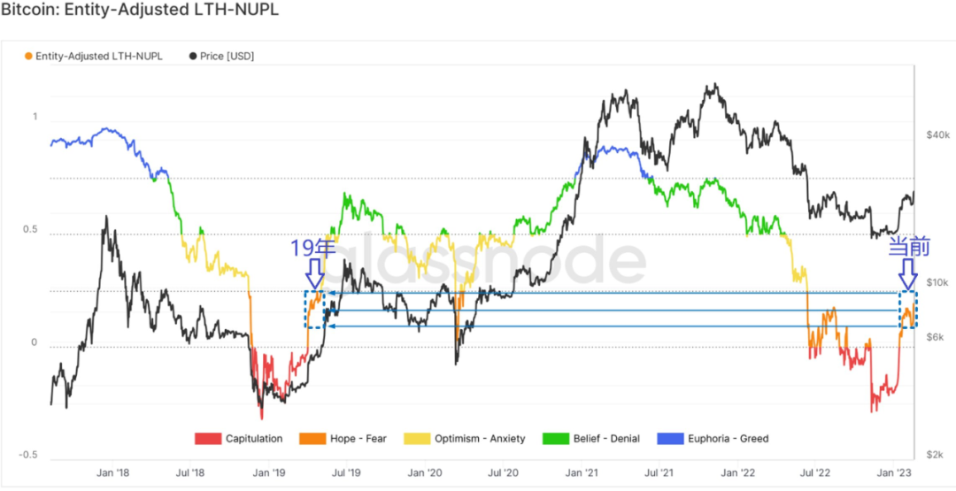 CryptoChan(@0xCryptoChan)发推表示:【2023小牛系列】简单刻下2019年,当前小牛中继,走势稳定。在随后几天其又连续发表一些链上数据,从图表中看BTC仍有上涨空间。