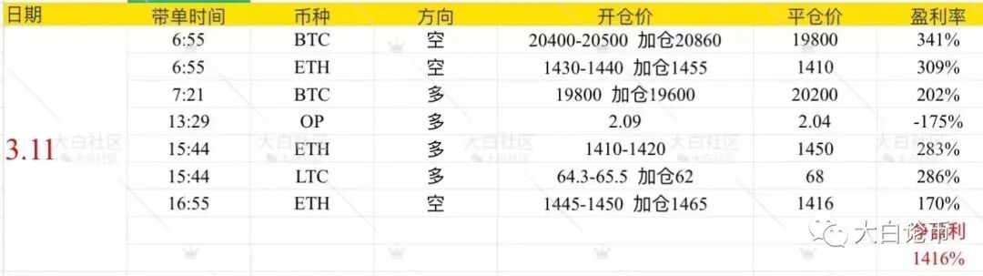 下方是大白社区本周实盘群单子,恭喜跟上的币友,如果你操作不顺,可以来试试水。