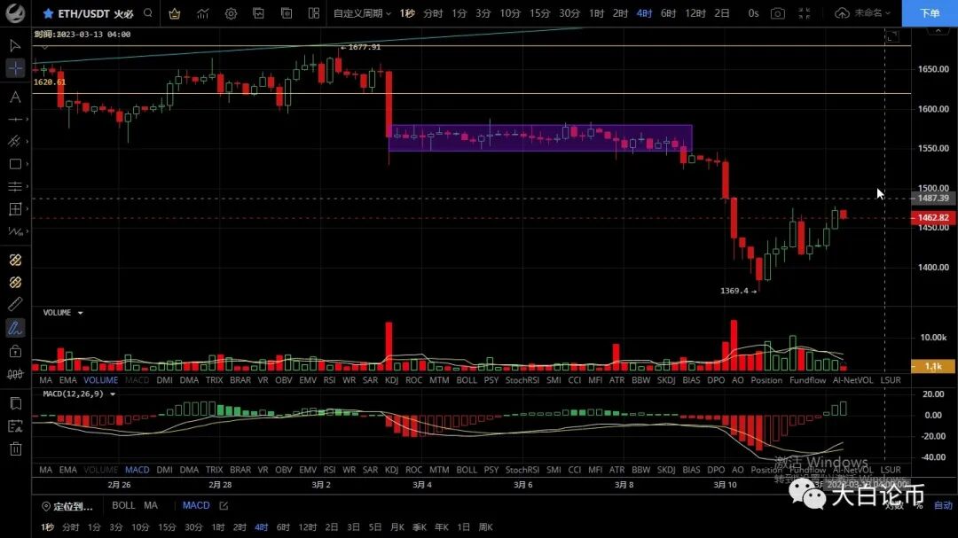 以太坊昨日白盘呈冲高回落走势,最低跌至1409一线支撑反弹,随后行情缓慢上行,早间币价再次回到1477一线承压回落,恭喜跟上昨日思路的朋友多单获利近70点,目前币价在1462附近运行,四小时级别行情上行至1480附近受阻明显呈回踩走势,下方先关注1446支撑,不破将继续上行,macd多头运行双线金叉状态,但多头未走出突破延续,整体处于区间震荡,若能突破1480那么行情则会进一步上行,日内思路建议未破区间前高空低多对待,上方压制1480-1500,下方支撑1446-1410