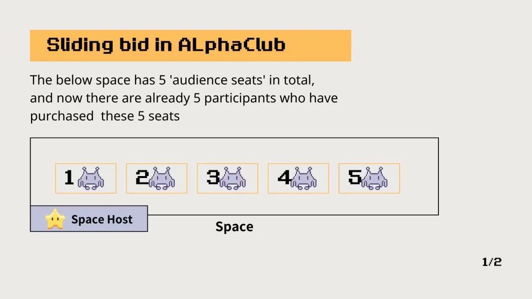 Space位置有限,人数满后怎么办?采用Sliding Bids,后来者按照bonding curve付出高价给当前座位中的第一个人 ,以此类推。
