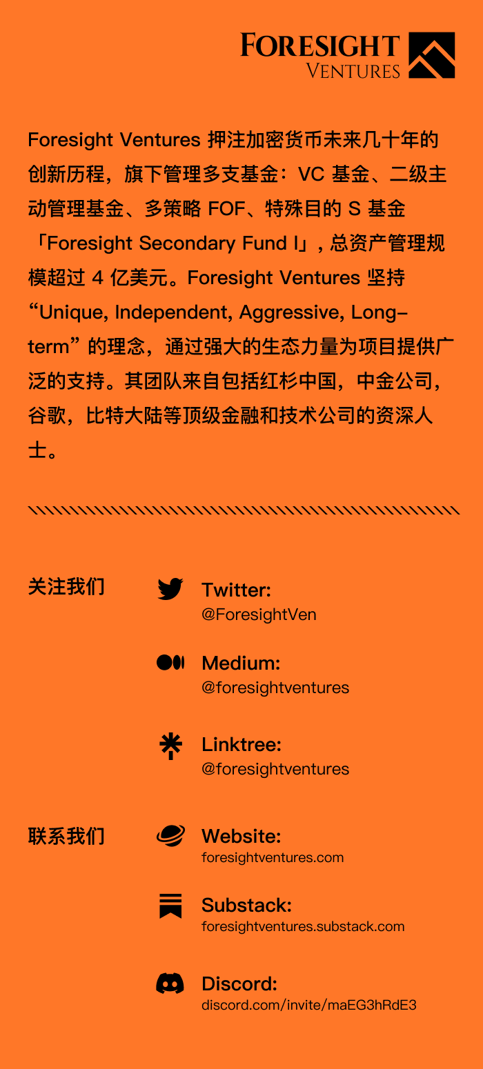 免责声明: Foresight Ventures所有文章均不作为投资建议。投资有风险,请评估个人风险承受能力,审慎做出投资决策。