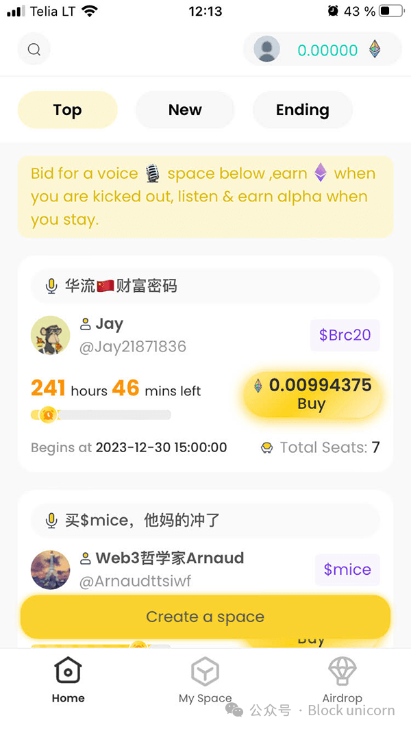 AlphaClub正在构建一个基于游戏化和音频的社交平台,其中使用债券曲线为进入语音房间定价。用户投标争夺演讲者席位;座位有限,新的竞标者可以挤掉现有的演讲者来占据他们的位置。如果第八个人加入一个已满的七人房间,第一个进入的人被迫因为早期获利而被踢出,通过价格来维持独特性。