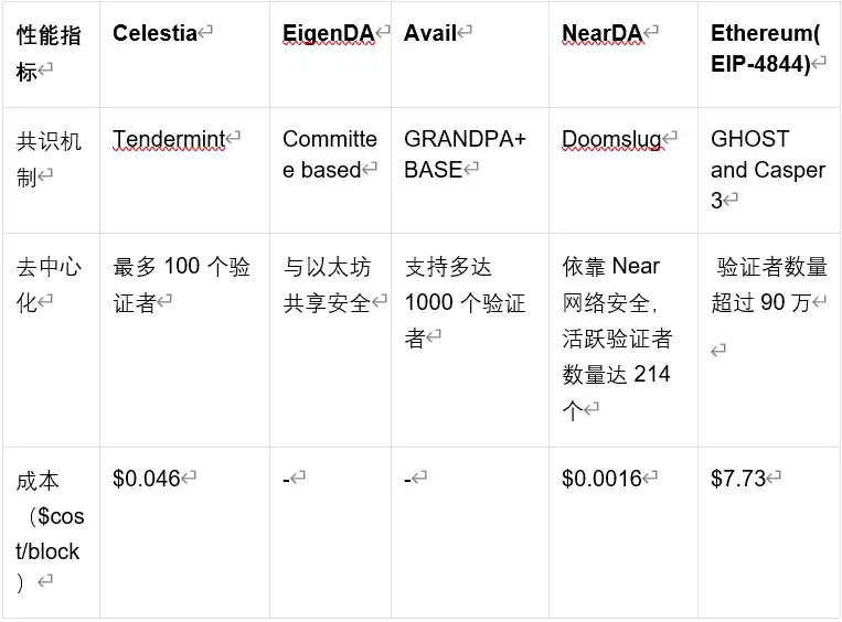 市场上,DA(Data Availability)项目已经如雨后春笋出现,其中具有强竞争力的项目是 Celestia、EigenLayer、Avail、NearDA 和 Covalent 等。