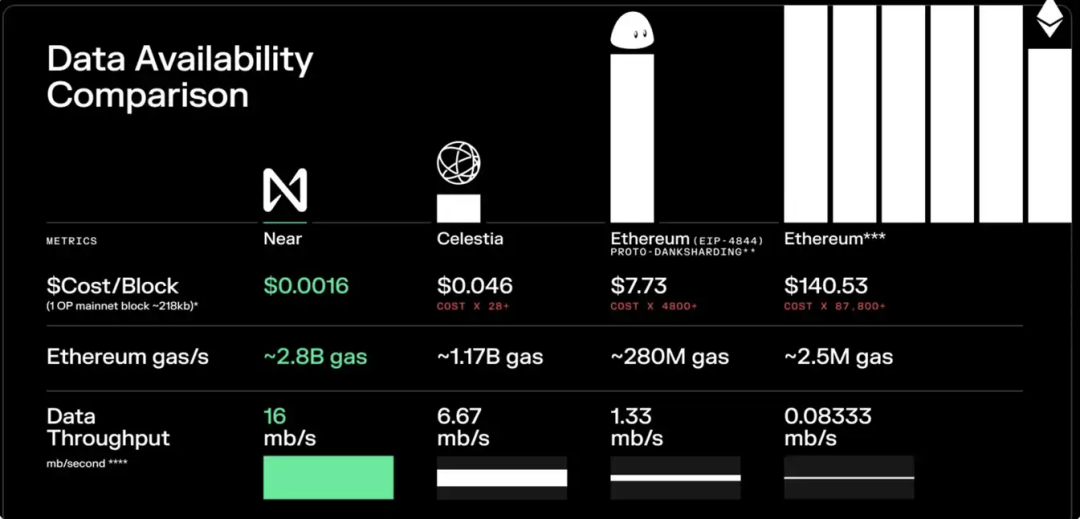 • 费用优势:NEAR 上的 100kB calldata 花费 0.0033 美元