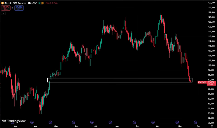 比特币跌破了 92,000 美元,被市场广泛讨论的 CME 期货缺口,这一波终于是成功被补掉了。